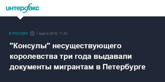 "Консулы" несуществующего королевства три года выдавали документы мигрантам в Петербурге