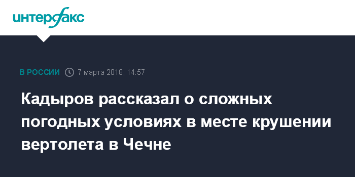 "Сегодня в Чечне высоко в горах потерпел крушение вертолет, принадлежащий погранслужбе", - сказал Кадыров.