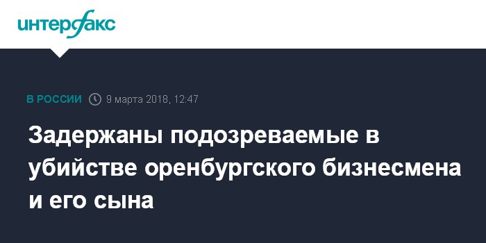 Москва. 9 марта. INTERFAX.RU - Сотрудники правоохранительных и следственных органов задержали троих подозреваемых в убийстве бизнесмена и его семилетнего сына, которое было совершено в середине января в Оренбурге, сообщает Следственный комитет России.