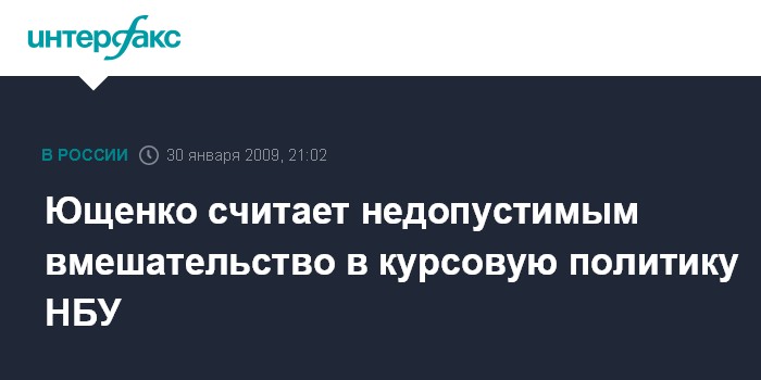 Москва. 30 января. INTERFAX.RU - Президент Украины Виктор Ющенко считает недопустимым вмешательство в курсовую политику Национального банка. "Печально, что с самых высоких государственных уровней идут атаки на НБУ идут атаки с одной целью - получить доступ к (печатному) станку. Председателю НБУ диктуют, каким должен быть курс гривни напрямую", - сказал В.Ющенко в интервью журналистам ряда изданий и информационных агентств в пятницу.