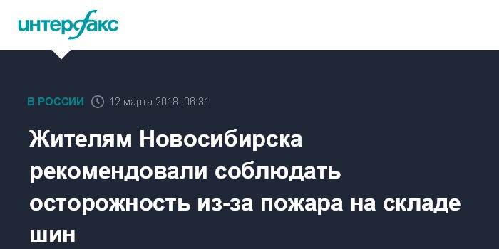 Москва. 12 марта. INTERFAX.RU - Концентрация вредных веществ в воздухе не превысила предельно допустимых значений в результате пожара на складе шин в Новосибирске, сообщает пресс-служба ГУ МЧС России по региону.