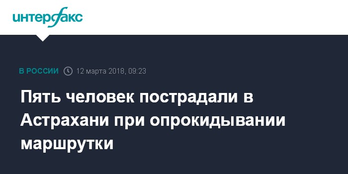 Москва. 12 марта. INTERFAX.RU - Пять пассажиров маршрутного такси, в том числе ребенок, госпитализированы в Астрахани после ДТП. Об этом сообщили агентству "Интерфакс" в пресс-службе управления МВД РФ по региону в понедельник.