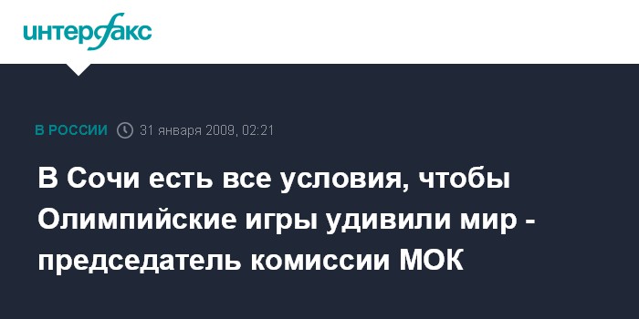В Сочи есть все условия, чтобы Олимпийские игры удивили мир - председатель комиссии МОК