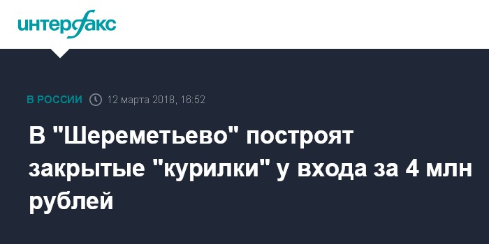 В материалах указано, что оператор аэропорта - АО "Международный аэропорт "Шереметьево" (МАШ) объявил конкурс на поставку в I полугодии 2018 года семи павильонов для курения с вытяжной системой. Павильоны предназначены "для оснащения специального места на открытом воздухе для курения табака". Такие места планируется обустроить как в южном терминальном комплексе "Шереметьево" (терминалы D, E и F), так и в северном (В, С1 и С2).