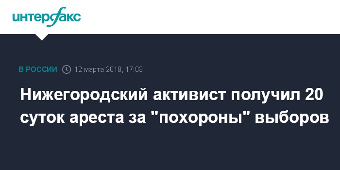 Нижегородский активист получил 20 суток ареста за "похороны" выборов