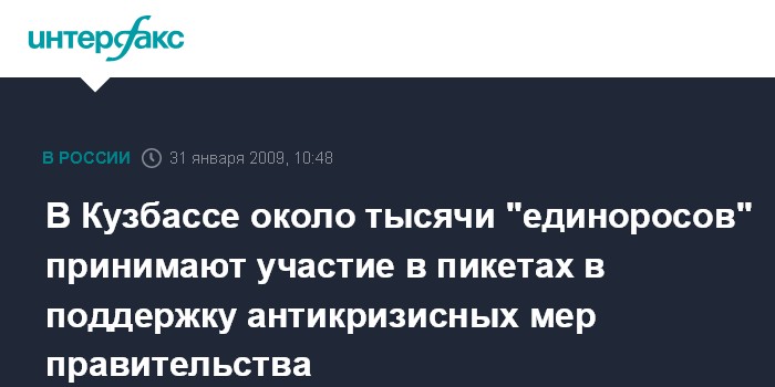 "Основные лозунги - это поддержка антикризисных мер, принятых как правительством РФ, так и администрацией Кемеровской области", - отметил А.Курасов. По его словам, всего в пикетах принимают участие около тысячи человек, которые раздадут 23 тысячи листовок