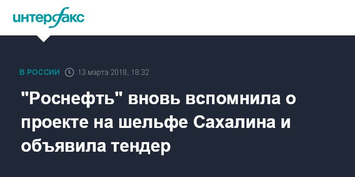Москва. 13 марта. INTERFAX.RU - НК "Роснефть" вновь вспомнила про проект на шельфе Сахалина, который ранее планировала осуществлять с иностранным партнером.