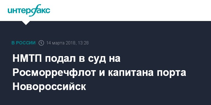 Москва. 14 марта. INTERFAX.RU - ПАО "Новороссийский морской торговый порт" (НМТП) обратилось в Арбитражный суд Москвы с иском против Федерального агентства морского и речного транспорта (Росморречфлот) и капитана порта Новороссийск Евгения Тузинкевича, следует из картотеки суда.