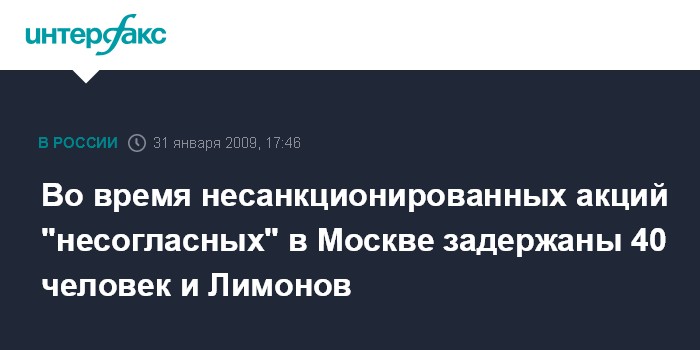 Во время несанкционированных акций "несогласных" в Москве задержаны 40 человек и Лимонов