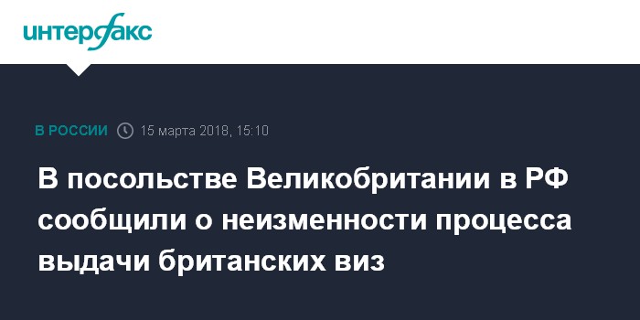Москва. 15 марта. INTERFAX.RU - Процесс рассмотрения и выдачи британских виз россиянам остается неизменным, несмотря на обострение отношений между Москвой и Лондоном, сообщает в четверг посольство Великобритании в РФ.