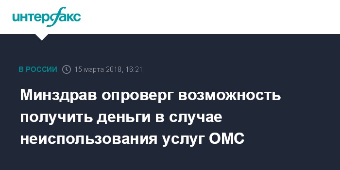 Минздрав опроверг возможность получить деньги в случае неиспользования услуг ОМС
