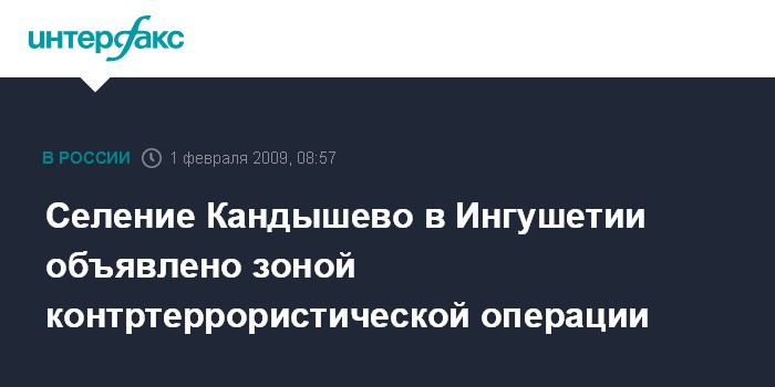 Назрань. 1 февраля. ИНТЕРФАКС-ЮГ - Село Кандышево Назрановского района Ингушетии объявлено правоохранительными органами республики зоной контртеррористической операции.