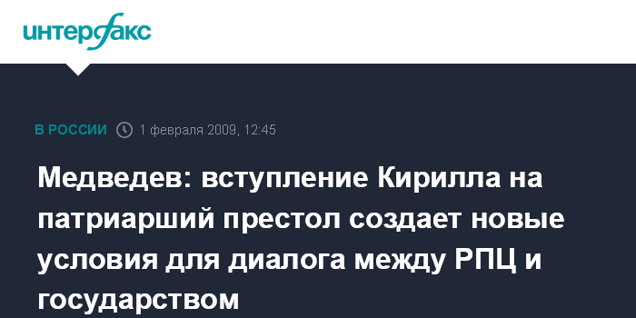 Медведев: вступление Кирилла на патриарший престол создает новые условия для диалога между РПЦ и государством