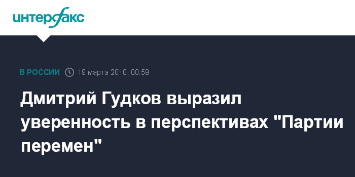 Москва. 19 марта. INTERFAX.RU - Экс-депутат Госдумы РФ Дмитрий Гудков, ранее объявивший о создании "Партии перемен" совместно с Ксенией Собчак, уверен в перспективах партии, несмотря ее результат на выборах.