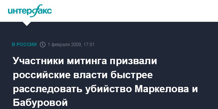 Как отметил С.Удальцов, манифестанты требовали у властей скорейшего расследования убийства С.Маркелова и А.Бабуровой.