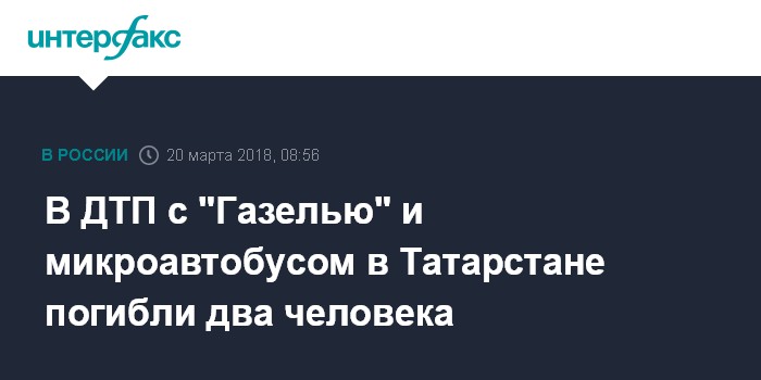 Москва. 20 марта. INTERFAX.RU - Обстоятельства столкновения микроавтобуса и среднетоннажного грузовика, в котором погибли два человека и еще пятеро пострадали, выясняют в Татарстане.
