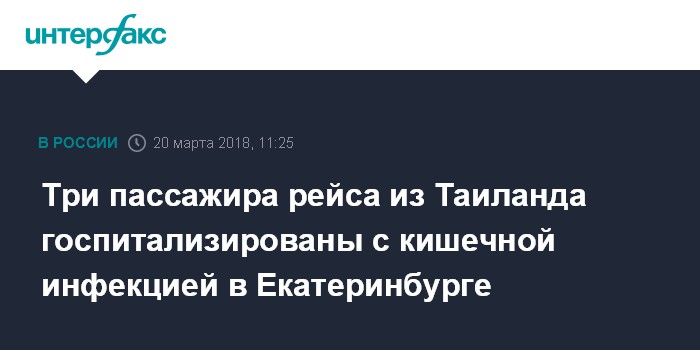 Три пассажира рейса из Таиланда госпитализированы с кишечной инфекцией в Екатеринбурге