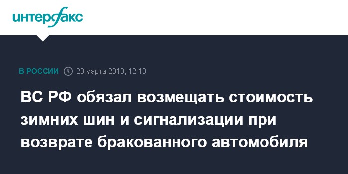 ВС РФ обязал возмещать стоимость зимних шин и сигнализации при возврате бракованного автомобиля