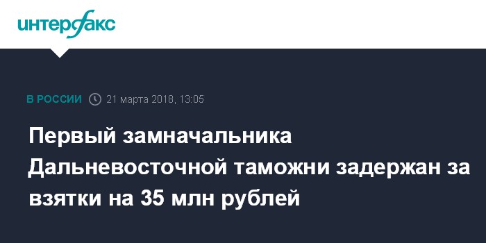 Первый замначальника Дальневосточной таможни задержан за взятки на 35 млн рублей