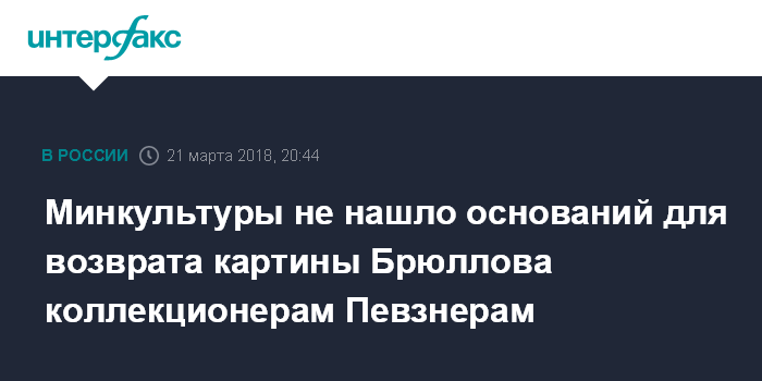 Минкультуры не нашло оснований для возврата картины Брюллова коллекционерам Певзнерам