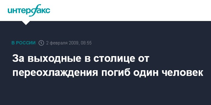 Москва. 2 февраля. INTERFAX.RU - За выходные в Москве от переохлаждения пострадали 14 человек, один из них скончался, сообщил "Интерфаксу" в понедельник источник в правоохранительных органах города.