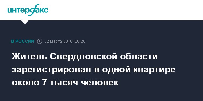 Житель Свердловской области зарегистрировал в одной квартире около 7 тысяч человек