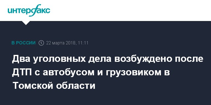 Москва. 22 марта. INTERFAX.RU - Следственный комитет и полиция возбудили уголовные дела в связи со столкновением автобуса с грузовиком в Томской области, в результате которого погибли два человека и четверо были госпитализированы. Об этом сообщает пресс-служба следственного управления СКР по Томской области в четверг.