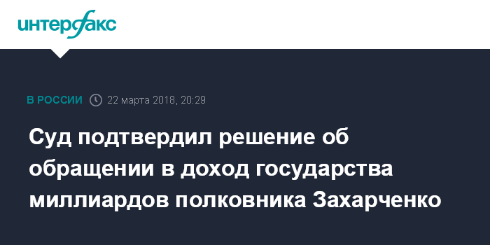 Суд подтвердил решение об обращении в доход государства миллиардов полковника Захарченко