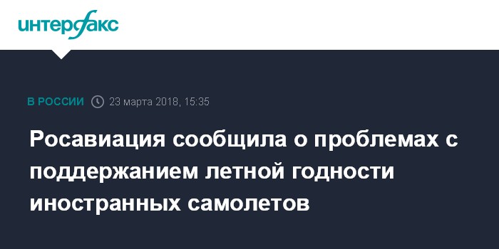 Москва. 23 марта. INTERFAX.RU - Росавиация отмечает проблемы с поддержанием летной годности самолетов иностранного производства в РФ из-за отсутствия четкой нормативной базы.