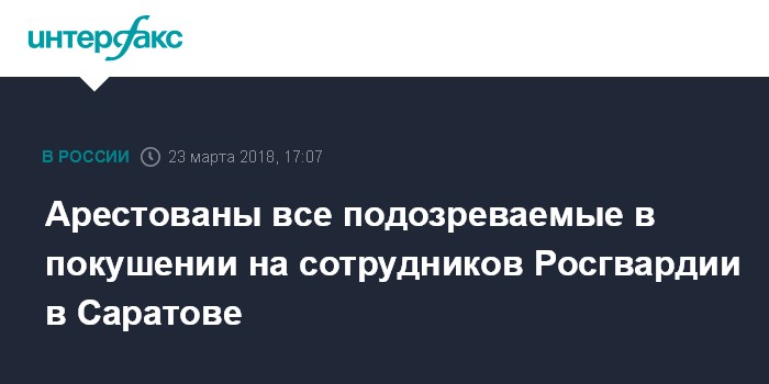 Москва. 23 марта. INTERFAX.RU - Волжский районный суд Саратова в пятницу заключил под стражу еще троих подозреваемых в покушении на убийство сотрудников полиции и Росгвардии в Саратовской области. Об этом сообщили агентству "Интерфакс" в пресс-службе регионального следственного управления СКР.