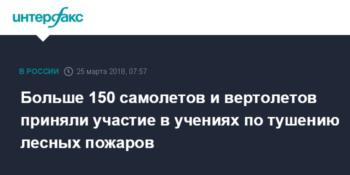 В пятницу глава МЧС России Владимир Пучков потребовал от подчиненных подготовить авиацию министерства для борьбы с лесными пожарами. В рамках подготовки к пожароопасному периоду на территории России МЧС совместно с другими министерствами, ведомствами и службами сформировало авиационную группировку, в состав которой вошли более 420 воздушных судов - свыше 170 самолетов и 245 вертолетов.