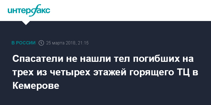Москва. 25 марта. INTERFAX.RU - Спасатели к настоящему времени прошли три этажа горящего торгового центра "Зимняя вишня" в Кемерове, сообщил журналистам заместитель начальника ГУ МЧС по региону Евгений Дедюхин.