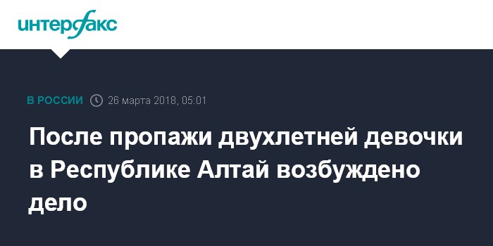 После пропажи двухлетней девочки в Республике Алтай возбуждено дело