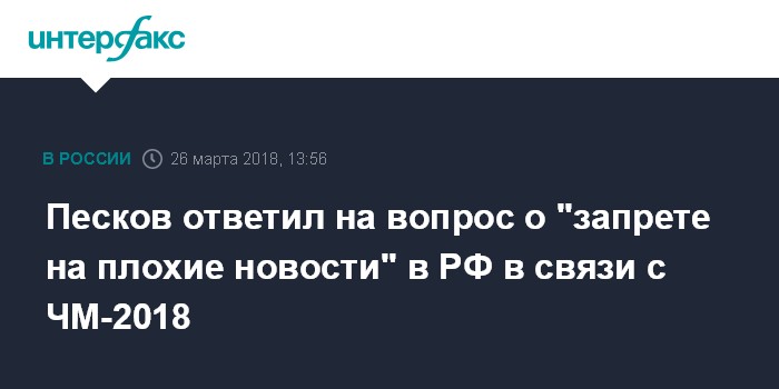 Песков ответил на вопрос о "запрете на плохие новости" в РФ в связи с ЧМ-2018