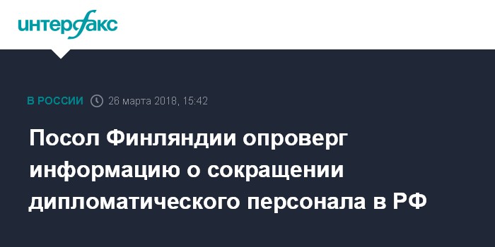 Посол Финляндии опроверг информацию о сокращении дипломатического персонала в РФ