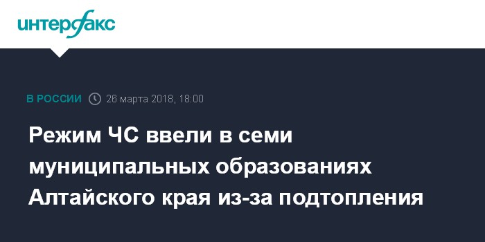 "Режим чрезвычайной ситуации в связи с ухудшением паводковой обстановки на территории региона объявлен в Белокурихе, Чарышском, Петропавловском, Солонешенском, Третьяковском, Алтайском районах. С 24 марта режим ЧС действует на территории Краснощековского района. По оперативным данным, в населенных пунктах региона талыми водами подтоплено 2 тысячи 109 приусадебных участков, 970 жилых домов", - говорится в сообщении.