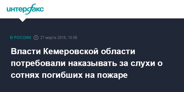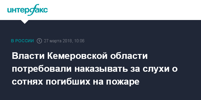 Власти Кемеровской области потребовали наказывать за слухи о сотнях погибших на пожаре