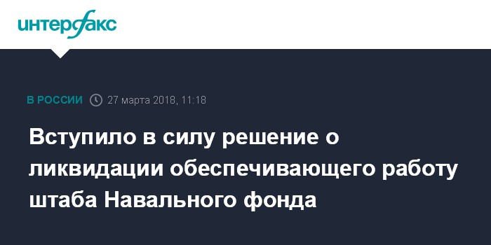 Вступило в силу решение о ликвидации обеспечивающего работу штаба Навального фонда