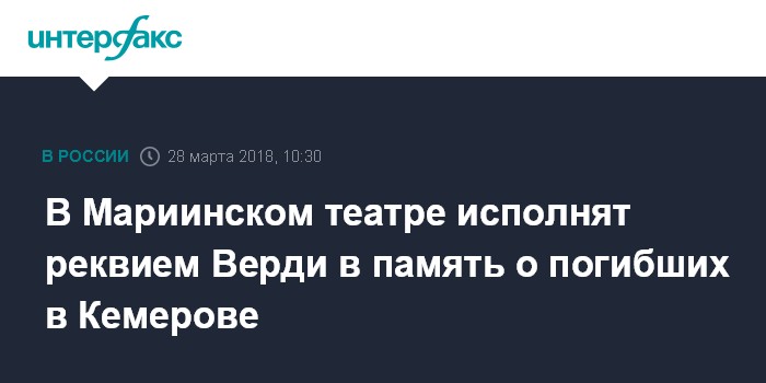 Москва. 28 марта. INTERFAX.RU - Реквием Джузеппе Верди прозвучит в Концертном зале Мариинского театра в среду в память о жертвах трагедии в Кемерове.
