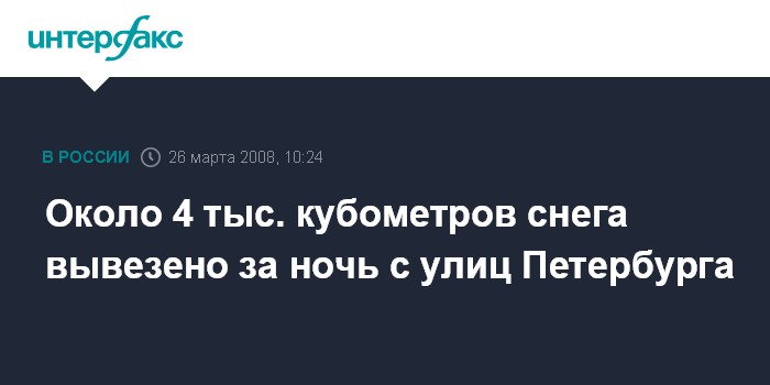 Согласно сообщению, всего с петербургских улиц было вывезено 3 тыс. 828 кубометров снега.