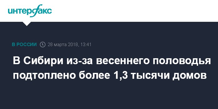 Москва. 28 марта. INTERFAX.RU - В Сибирском регионе в результате весеннего половодья подтоплены более 1,3 тысячи жилых домов и свыше 3,8 тысяч приусадебных участков, сообщает МЧС России.