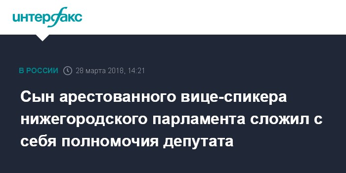 Сын арестованного вице-спикера нижегородского парламента сложил с себя полномочия депутата