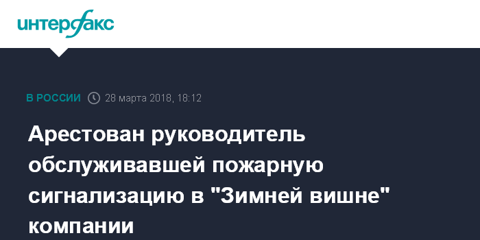 Арестован руководитель обслуживавшей пожарную сигнализацию в "Зимней вишне" компании