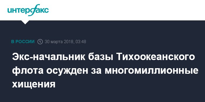 Экс-начальник базы Тихоокеанского флота осужден за многомиллионные хищения