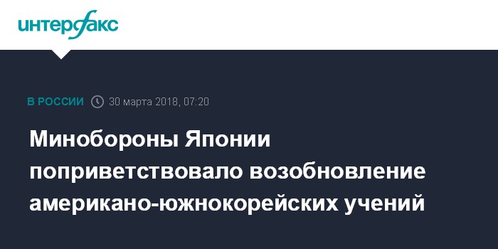 Москва. 30 марта. INTERFAX.RU - Министр обороны Японии Ицунори Онодера приветствовал возобновление США и Южной Кореей совместных военных учений, приостановленных на время проведения южнокорейской зимней Олимпиады.