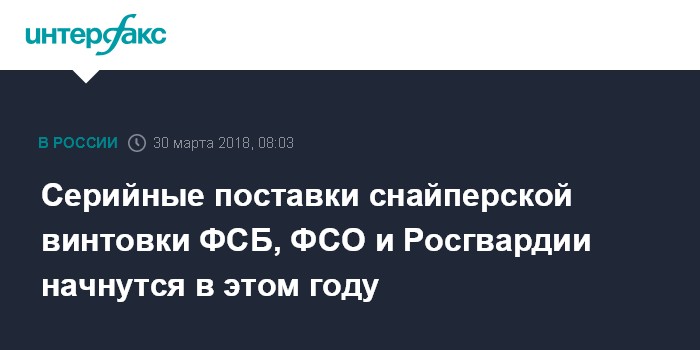 "Винтовка принята на вооружение в интересах Федеральной службы охраны (ФСО), Росгвардии и Федеральной службы безопасности (ФСБ). В этом году мы начинаем серийные поставки", - сказал Семизоров.