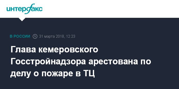 Глава кемеровского Госстройнадзора арестована по делу о пожаре в ТЦ