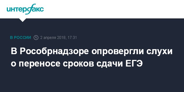 Москва. 2 апреля. INTERFAX.RU - Федеральная служба по надзору в сфере образования и науки опровергает перенос основной кампании сдачи ЕГЭ в этом году.