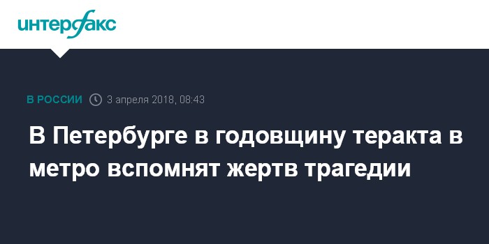 Москва. 3 апреля. INTERFAX.RU - Акция памяти жертв теракта в петербургском метрополитене пройдет в северной столице во вторник, 3 апреля, в первую годовщину трагедии.