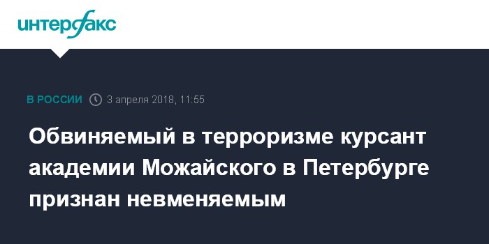 Обвиняемый в терроризме курсант академии Можайского в Петербурге признан невменяемым
